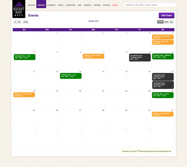 Eight Ray Music came to us in need of a web application to help their team book and manage their musicians, bands, and events.