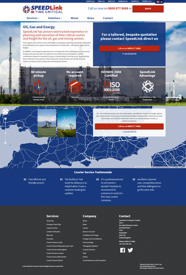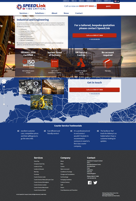 SpeedLink Transport is a same day and time critical courier, shipping and logistics company providing services across the UK, Europe and Canada. SpeedLink works in a wide variety of industry sectors and offers a wealth of experience in road, air and sea transport and logistics.